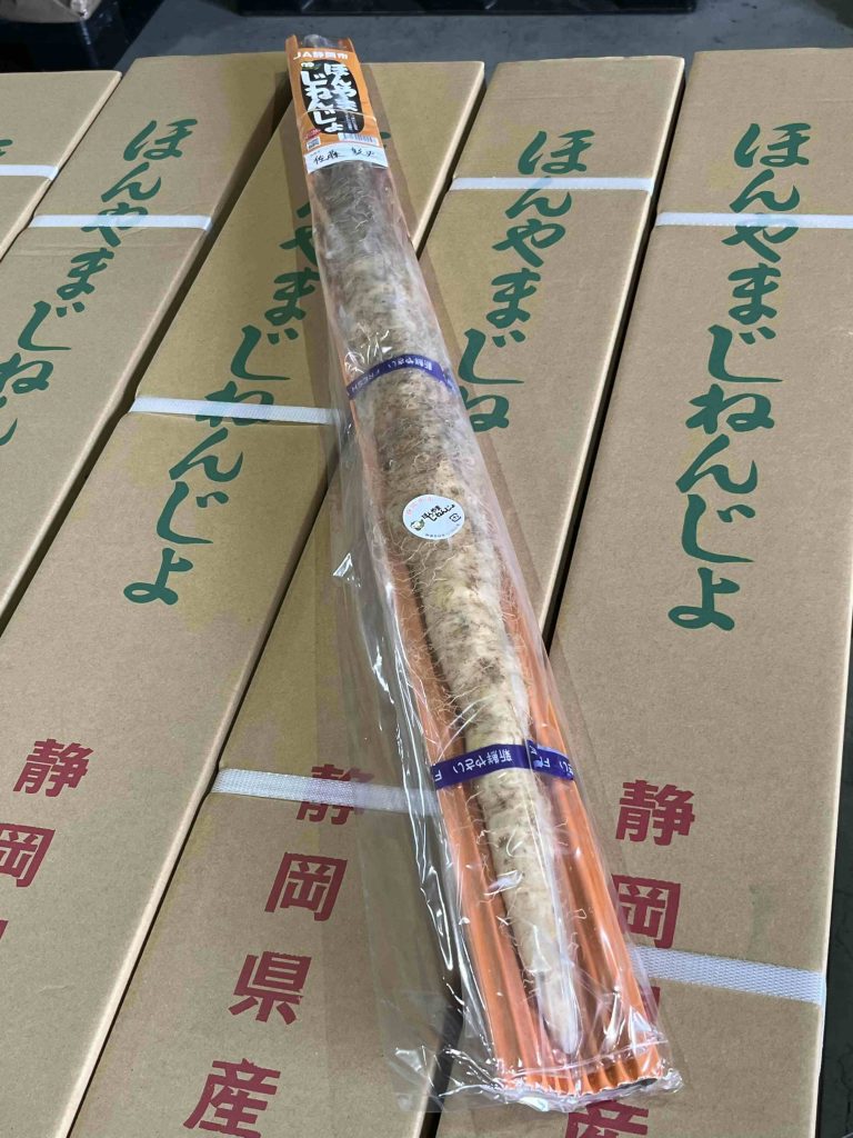 JA静岡市藁科地域指導員の自然薯担当者 繁田さんからは、「昨年度は、8月後半の長雨により思うような生育ができず、初出荷時の本数が600本にとどまった。今回はその経験を活かし、水量を調節しその結果、色が白色で、昨年度よりも太くしっかりした自然薯ができた。今年度の目標は出荷量50トン。これから年末まで部会の皆さんと出荷に向けて頑張っていく。」と言葉をいただきました。