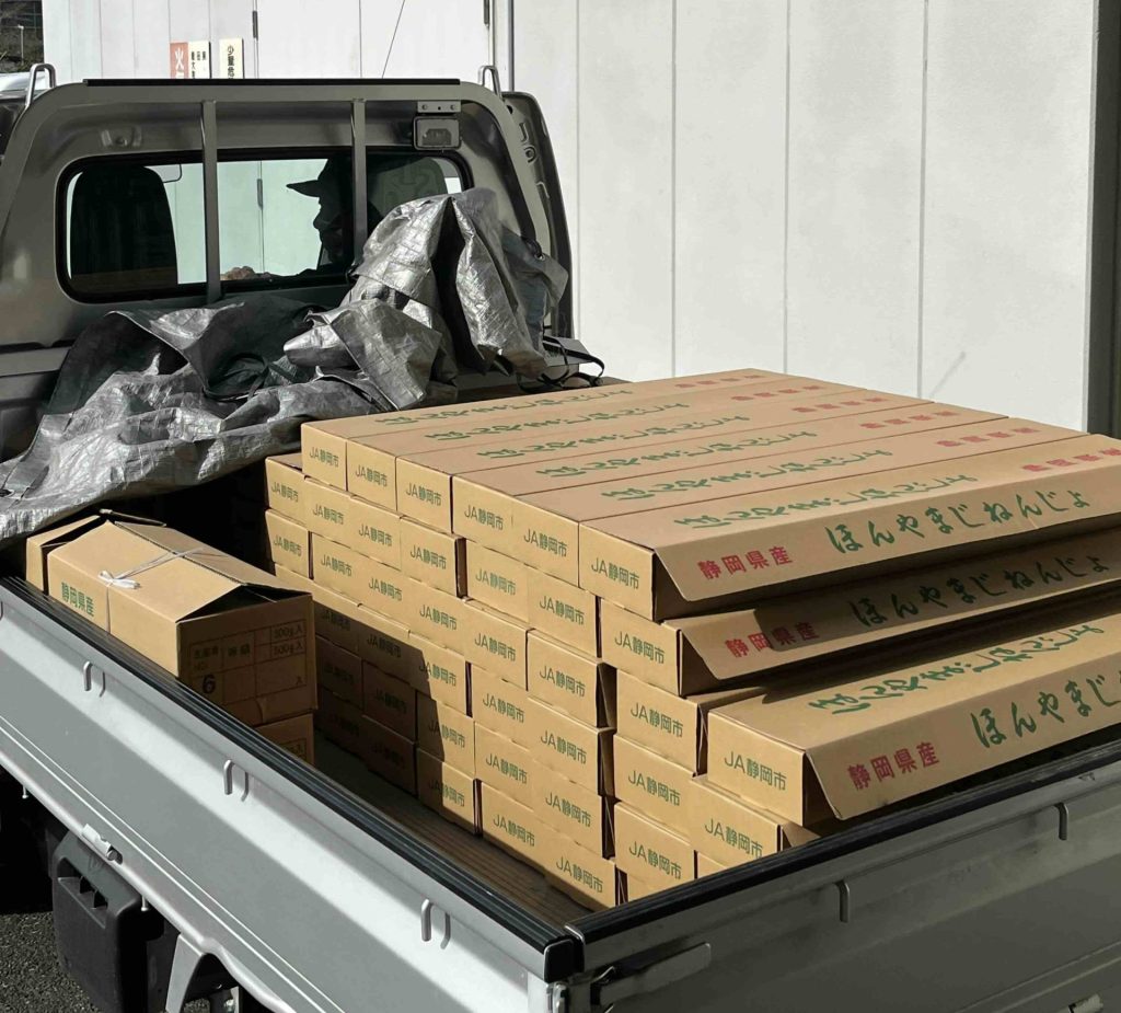 続々とJA静岡市中藁支店へほんやま自然薯が運ばれてきます。