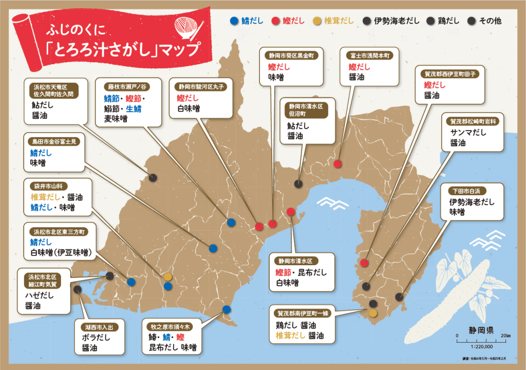 地域ごとに様々な出汁や味の違いがあり、令和4年には、「ふじのくに「とろろ汁さがし」マップ」も作成されました。