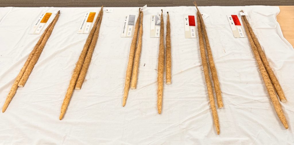 今年の出品数は25点あり、すらっと伸びた自然薯が並びました。