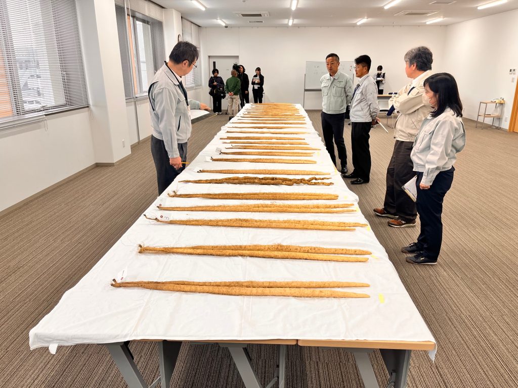 どの自然薯も丹精込めて作られており素晴らしいものばかりでしたが、中には夏場の高温乾燥の障害が出ているものもあり、栽培面での苦労が見られました。