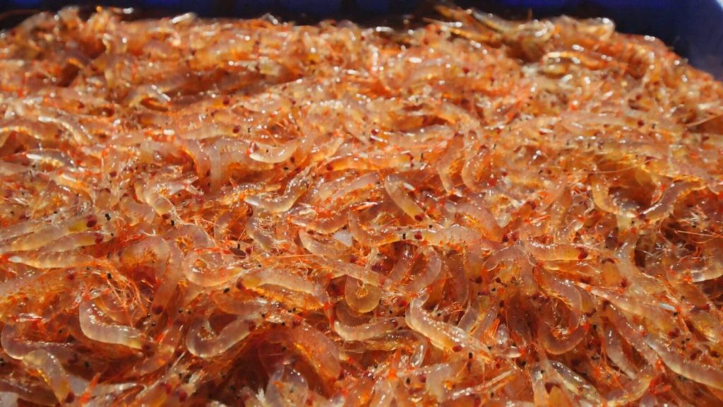 日本一の漁獲量を誇る由比漁港の桜えび。日本では駿河湾でのみ水揚げされる桜えびは、“しずまえ鮮魚”の代表選手です。最近は台湾など海外産の桜えびもお目にかかりますが、由比漁港で水揚げされた駿河湾産桜えびは甘味と旨みが違います。桜えびが持つ発光体の数が決め手で、台湾産より1.5倍以上多く、糖度計で測ってみても糖度が高いことがわかります。
