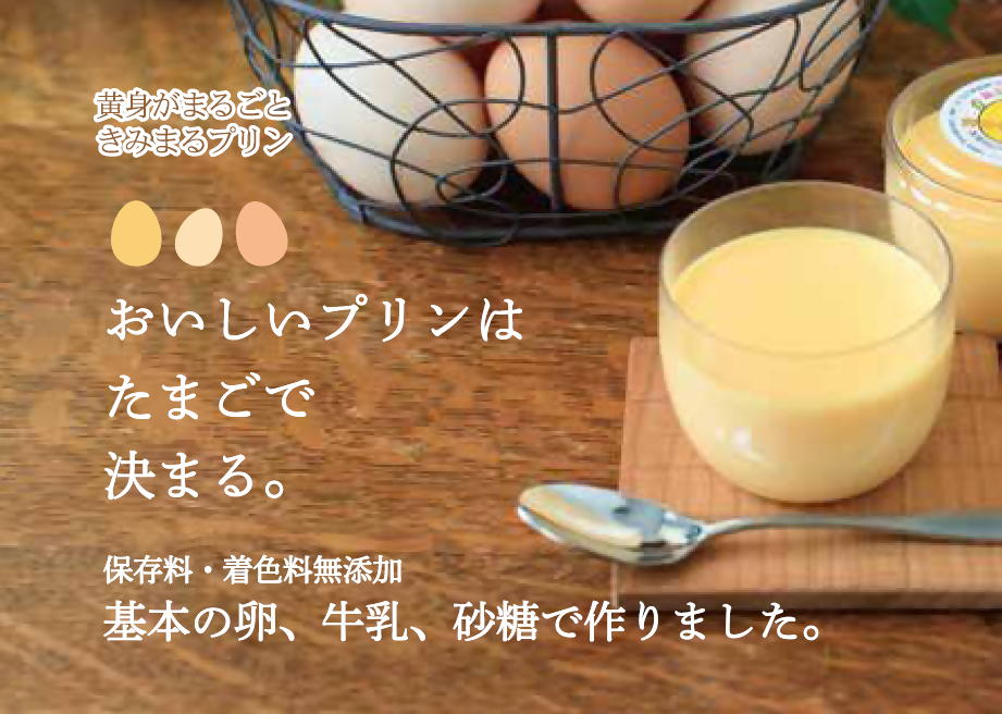 「美黄卵のおいしさをそのまま伝えたい」という思いから生まれたプリンで、なんと1個のプリンに卵黄1個分を贅沢に使用しています。